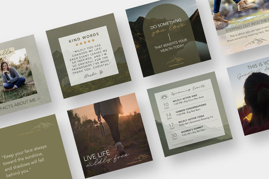 The Wildly You brand is rooted in nature and outdoor adventures which is seen and felt throughout the brand's imagery, icons, videos, and colors. The soft pink and coral shades bring in elements of the desert sun and warmth. The various shades of green and tan invite serene feelings and a sense of belonging in the wilderness, amongst the mountains and trees.